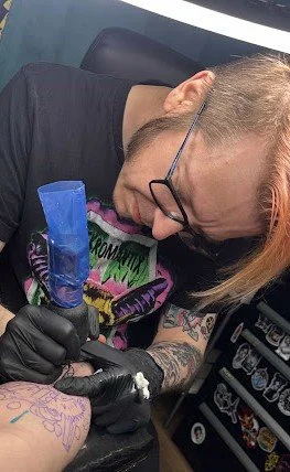 Brian has an associate’s degree in art from Portland Community College. From a young age, he’d draw scenes from his favorite movies and shows and continues to infuse his personality into their art and tattoos often adding movies, Anime, and other pop culture into my designs.